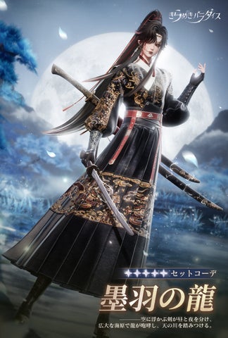 新星6セットコーデ「酔いし青鸞」と星5セットコーデ「墨羽の龍」が登場し、イベントガチャでは25回でSSR絆または限定星6セットパーツを1つ獲得できます。