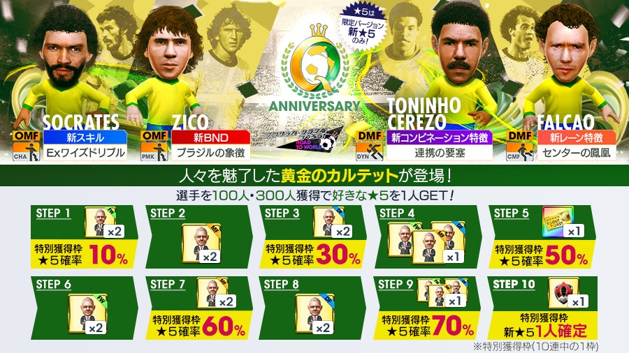 - ブラジルのスーパースターたちを新★5選手として追加する“Q Anniversary LEGEND SCOUT”を実施