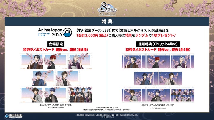 中外鉱業株式会社コンテンツ部は、AnimeJapan 2025にて『文豪とアルケミスト』の新商品を販売します。