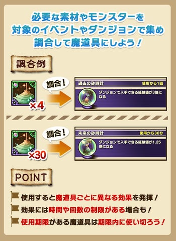 新システム「魔道具調合&使用」も実装され、集めた素材から効果のある魔道具を作成可能。
