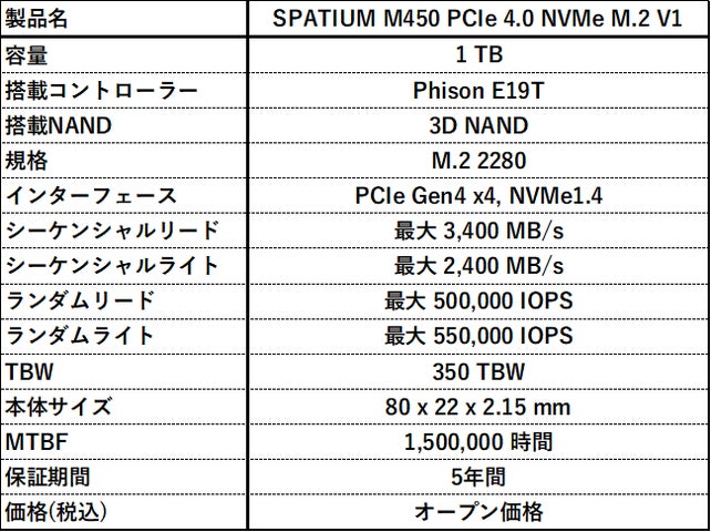 - PCIe Gen4対応M.2 SSD「SPATIUM M450 PCIe 4.0 NVMe M.2 1TB V1」を2025年2月28日発売