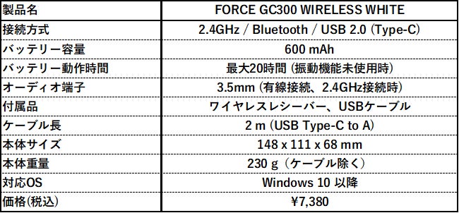 - 有線・無線両対応のゲーミングコントローラー「FORCE GC300 WIRELESS WHITE」発売