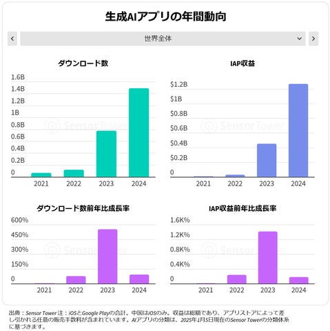 - AIアプリ市場も急成長し、様々なアプリにAI機能が組み込まれている。