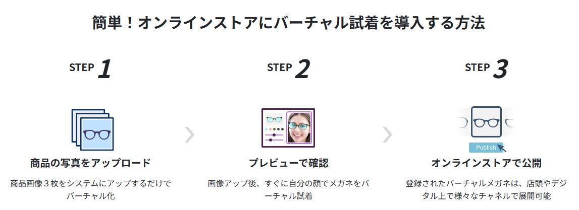 パーフェクト社のツールはAI・AR技術でレンズカラー、透明度、フレームなど細部までリアルに再現し、導入も容易です。