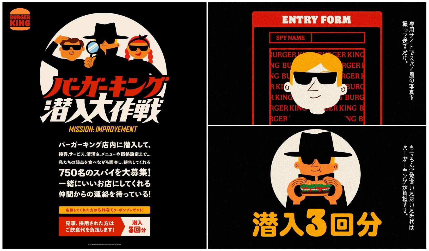 750名のスパイを募集し、採用者にはバーガーキングの商品を食べながら店舗調査を行い、報酬として飲食代全額負担、オリジナルTシャツとステッカー、さらに応募者全員にワッパーチーズセットの割引クーポンがプレゼントされます。
