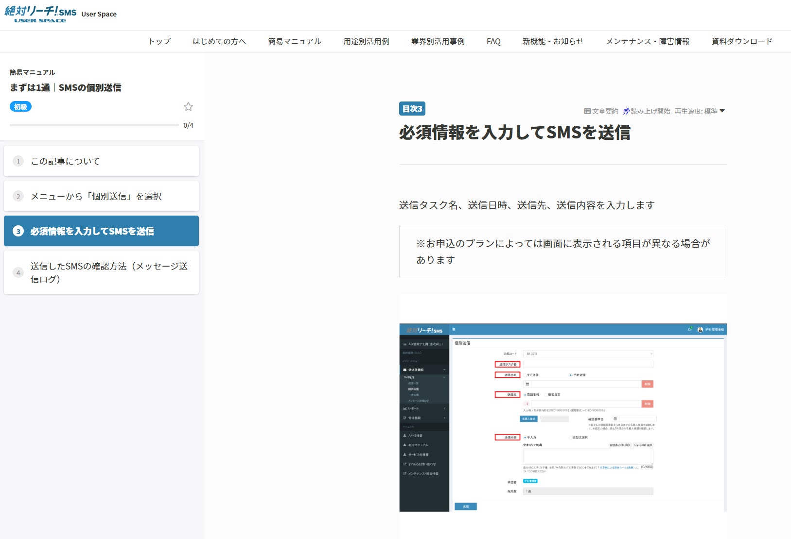 「絶対リーチ!SMS」のユーザー向けサポートサイト「User Space」を開設