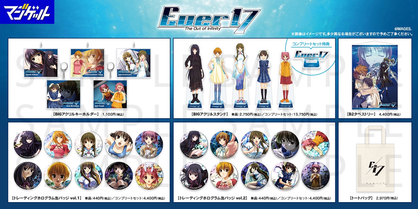 株式会社MAGES.は、2025年3月6日発売のSFサスペンスADVゲーム『Ever 17/Never 7 Double Pack』のリマスター版発売を記念し、通販サイト「マジゲット」にて『Ever 17 – The Out of Infinity』のオリジナルグッズの受注販売を開始しました。