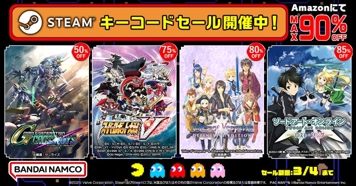 バンダイナムコエンターテインメントは、AmazonにてSteamキーコードセールを2025年3月4日まで開催中です。