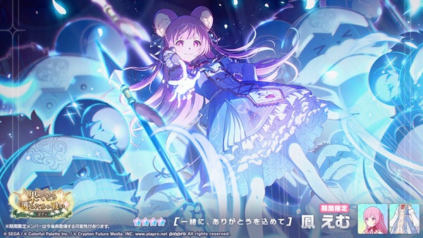 「果てなき護るための戦いガチャ」では、★4「[難航!企画会議] 天馬咲希」、「[一緒に、ありがとうを込めて] 鳳えむ」、「[よしよしノーサンキュー!] 鏡音リン」など、ライブ衣装付きの新メンバーが登場します。
