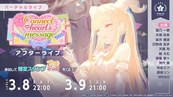 『プロジェクトセカイ カラフルステージ! feat. 初音ミク』で、2025年2月28日よりゲーム内イベント「Connect hearts message」と「果てなき護るための戦いガチャ」が開催されています。