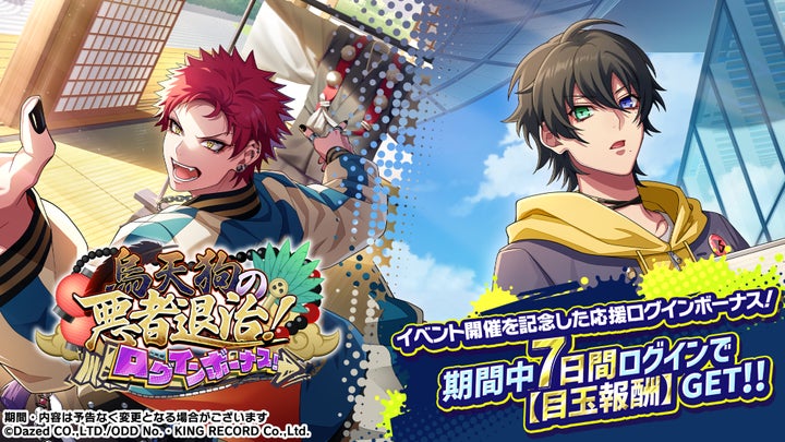 スマホ向けラップバトルRPG『ヒプノシスマイク-Dream Rap Battle-』(ヒプドリ)にて、2025年2月28日より期間限定イベント「烏天狗の悪者退治!」が開催されます。