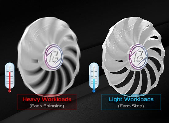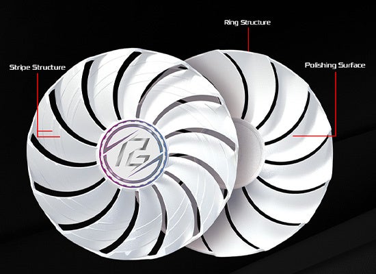 リバーススピン機能や独自のストライプ構造によるエアフロー強化、セミファンレス機能など、冷却性能にこだわった設計です。