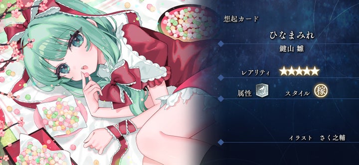 さらに、季節限定キャラクター「[流麗に舞う亡霊]西行寺幽々子」が登場するピックアップ願掛けや、鍵山雛の★5想起カード「ひなまみれ」のピックアップ願掛けも開催。