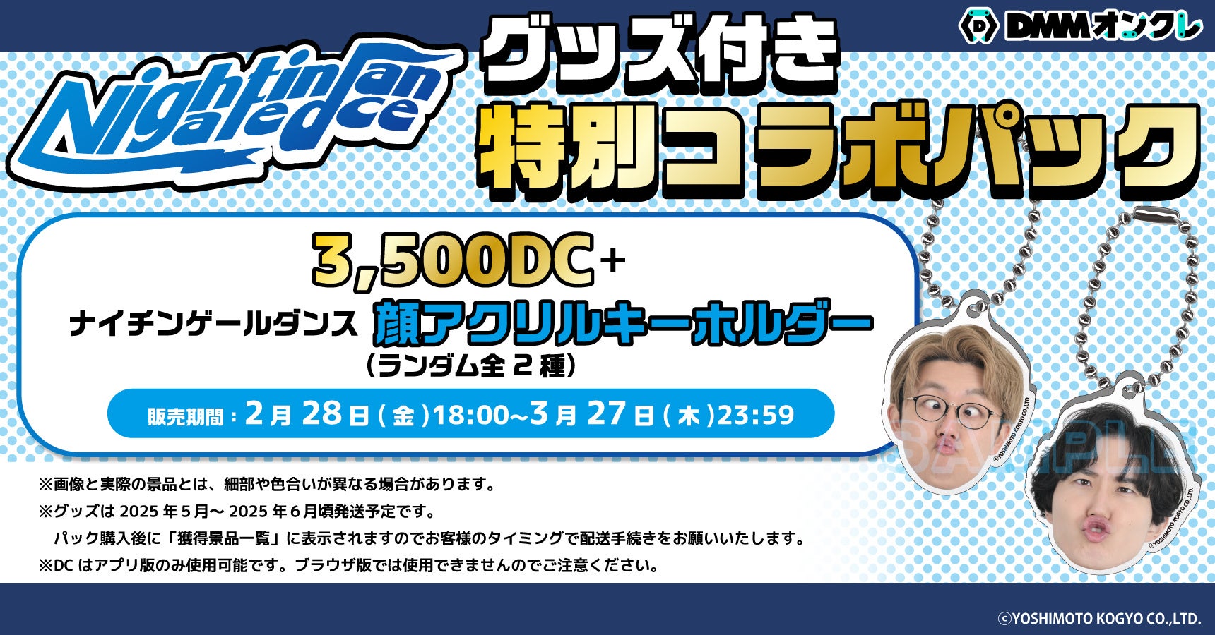 DMMオンクレにて、人気お笑いコンビ「ナイチンゲールダンス」のオリジナルグッズが登場します。