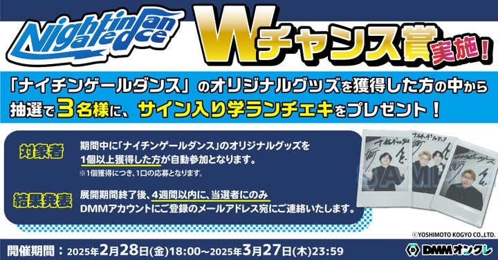 さらに、ナイチンゲールダンスがDMMオンクレをプレイする様子を収めた動画がYouTubeで公開され、グッズ獲得者にはサイン入りチェキが当たるWチャンス賞も実施されます。