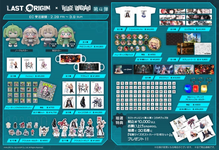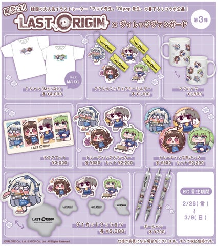 大人気スマホゲーム『ラストオリジン』とヴィレッジヴァンガードのコラボグッズ第4弾が2025年2月28日より受注販売開始、さらに1~3弾のグッズも再受注されます。