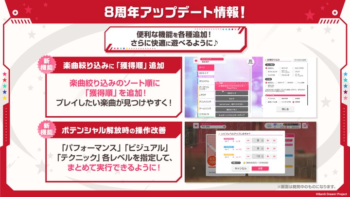 • ガルパ8周年記念として、新機能追加、大規模キャンペーン開催、新楽曲追加など