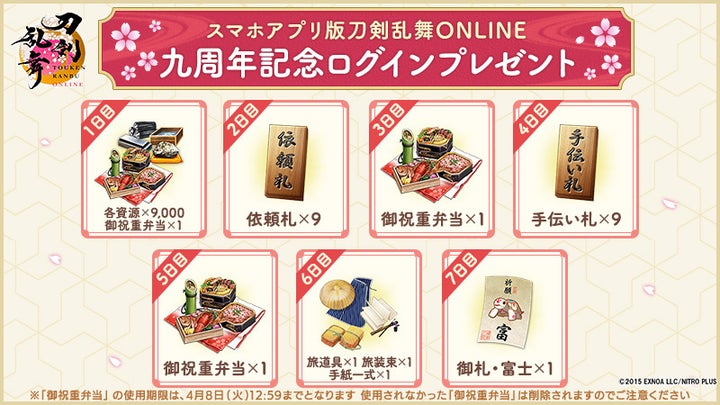これを記念して、ログインプレゼントとして「御祝重弁当」や「御札・富士」などが配布されます。