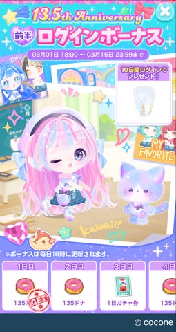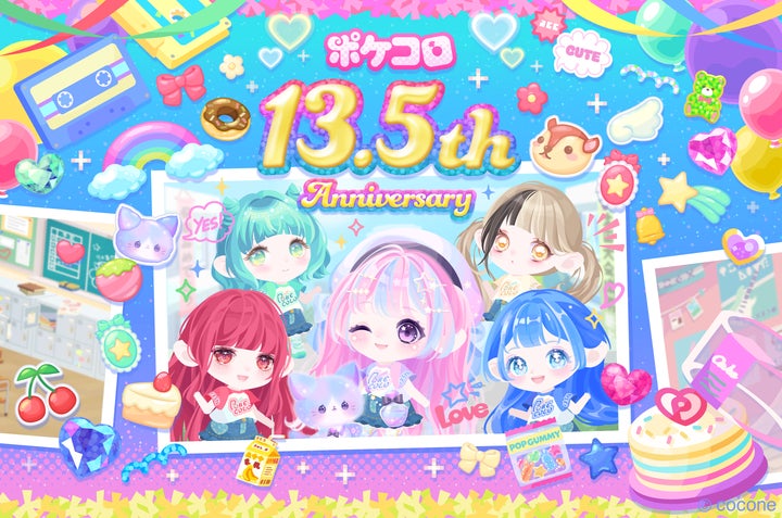アバターアプリ『ポケコロ』がサービス開始13.5周年を迎え、3月1日よりアニバーサリーイベントを開催。