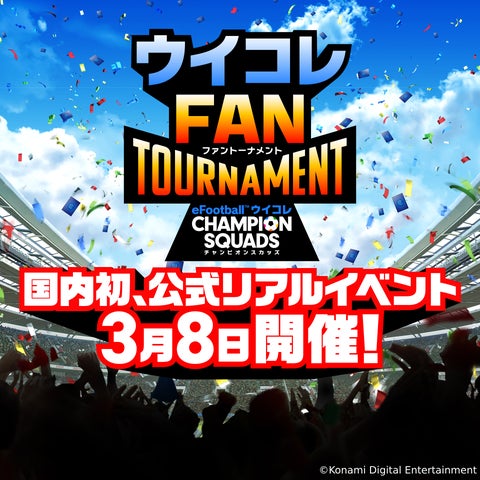 コナミデジタルエンタテインメントは、モバイルサッカーゲーム『eFootball™ ウイコレ CHAMPION SQUADS』(ウイコレ)の公式リアルイベント「ウイコレ FAN TOURNAMENT」を3月8日に開催し、公式YouTubeチャンネルで生配信することを発表しました。