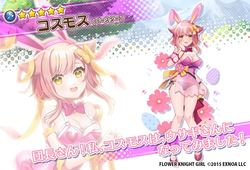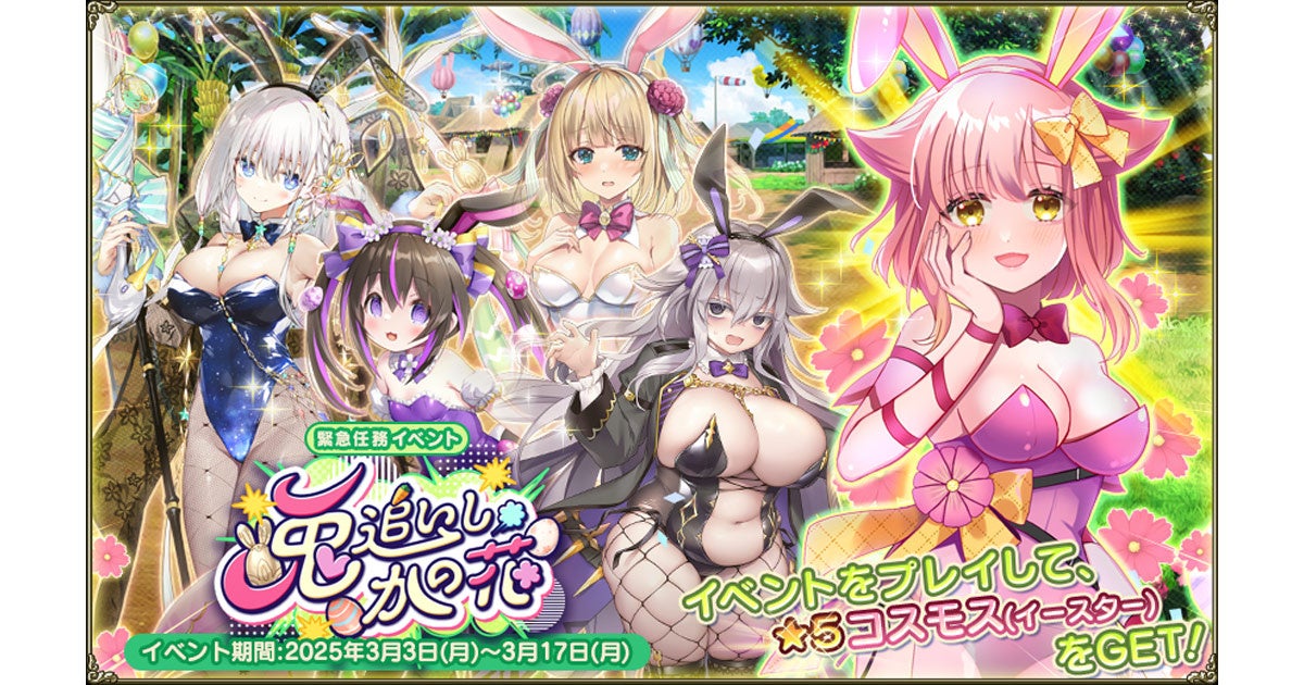 新イベント「兎追いし、かの花」が開催され、イースター祭をテーマに花騎士たちがバニー姿で登場します。