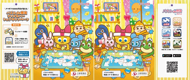 オーテ株式会社は、三省堂書店とコラボし、パズルアプリ「パズルde懸賞」シリーズのブックカバーを配布するキャンペーンを実施します。