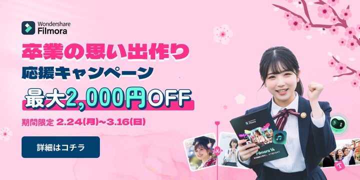 • Filmoraの卒業シーズン応援キャンペーンで最大2,000円OFF