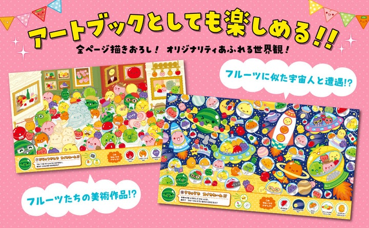絵本はゲームの世界観を踏襲しつつ、オリジナルイラストも多数収録されており、美術館や夏祭りといった様々なシーンでスイカたちが描かれています。