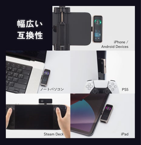 iPhoneやAndroidスマホとの接続に最適化されており、6.1インチと6.7インチのスマホ用転送ケーブル、L型アダプタ、ハードケースが付属します。