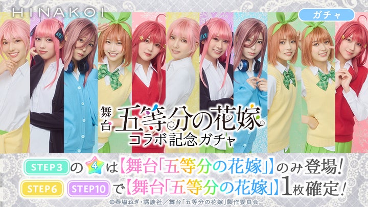 さらに、3月21日~4月20日には、舞台「五等分の花嫁」のビジュアルを使用したデジタルカード「ひな写」が手に入るコラボガチャも開催されます。