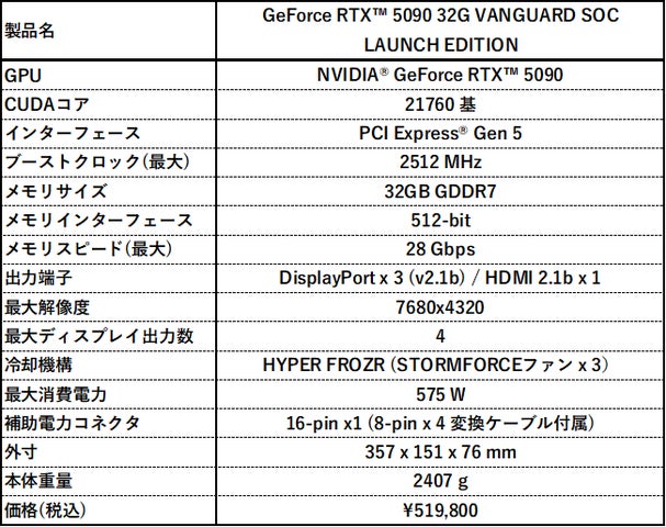 - GeForce RTX™ 5090 32G VANGUARD SOC LAUNCH EDITION、GeForce RTX™ 5090 32G VANGUARD SOC