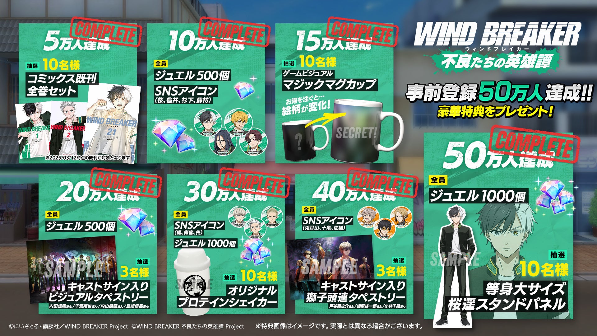 - 『WIND BREAKER 不良たちの英雄譚』事前登録者数50万人突破!