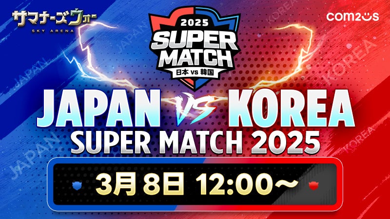 株式会社Com2uS Japanは、スマホ向けRPG『サマナーズウォー: Sky Arena』の日韓対抗戦「JAPAN vs KOREA SUPER MATCH 2025」を2025年3月8日(土)に表参道ヒルズ・スペース オーで開催すると発表しました。