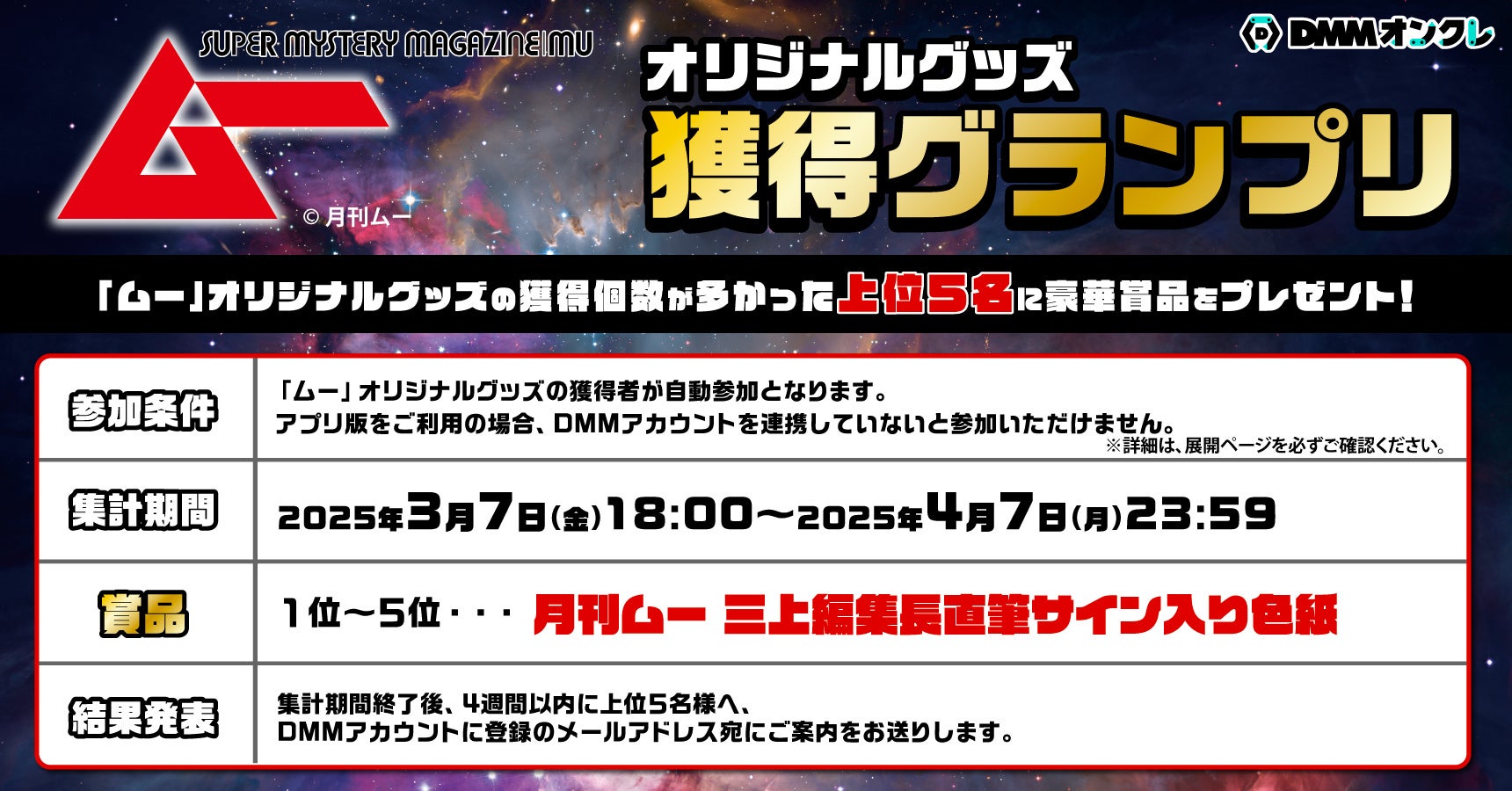 - 「ムー」グッズ獲得数上位5名に三上編集長直筆サイン入り色紙プレゼント