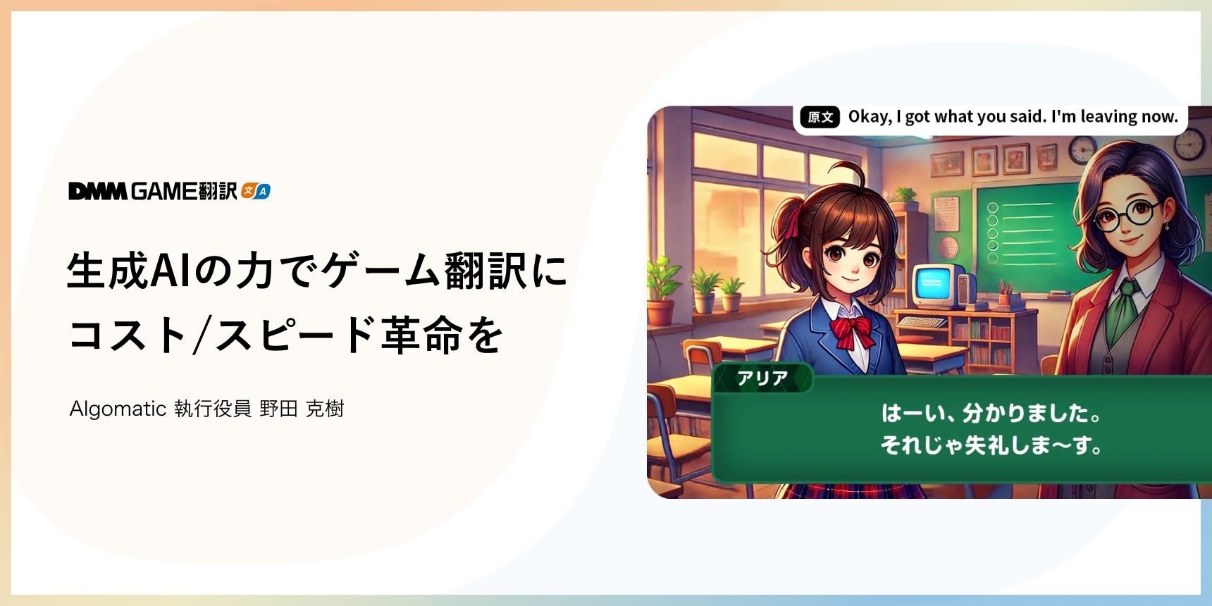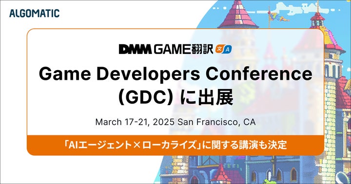 株式会社Algomaticは、ゲームに特化した翻訳AI「DMM GAME翻訳」を、2025年3月17日〜21日にサンフランシスコで開催されるGDC2025に出展します。