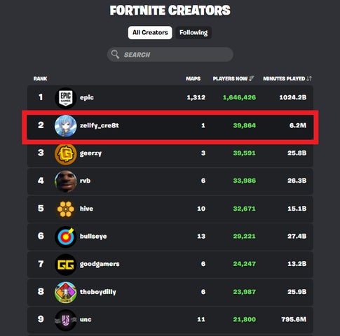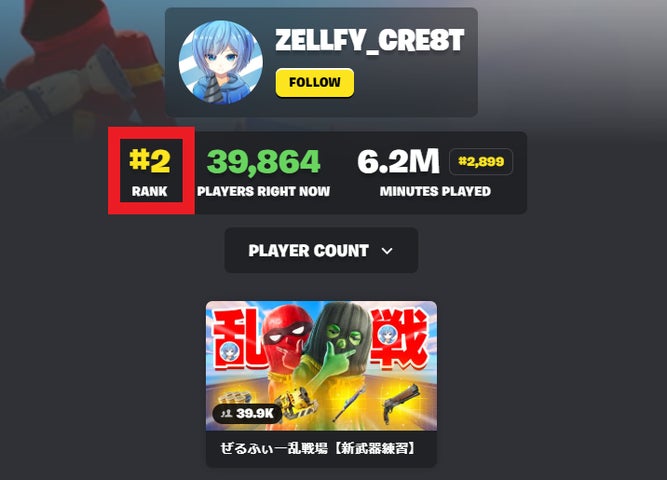 これはEpic Games公式マップを除くUGC内ランキングです。
