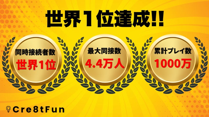 Cre8tFunスタジオが開発したFortniteクリエイティブモードのマップが、累計プレイ数1000万回突破、同時接続者数世界1位(約4.4万人)を記録しました。