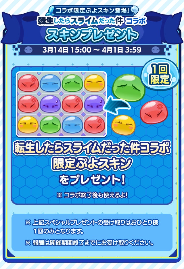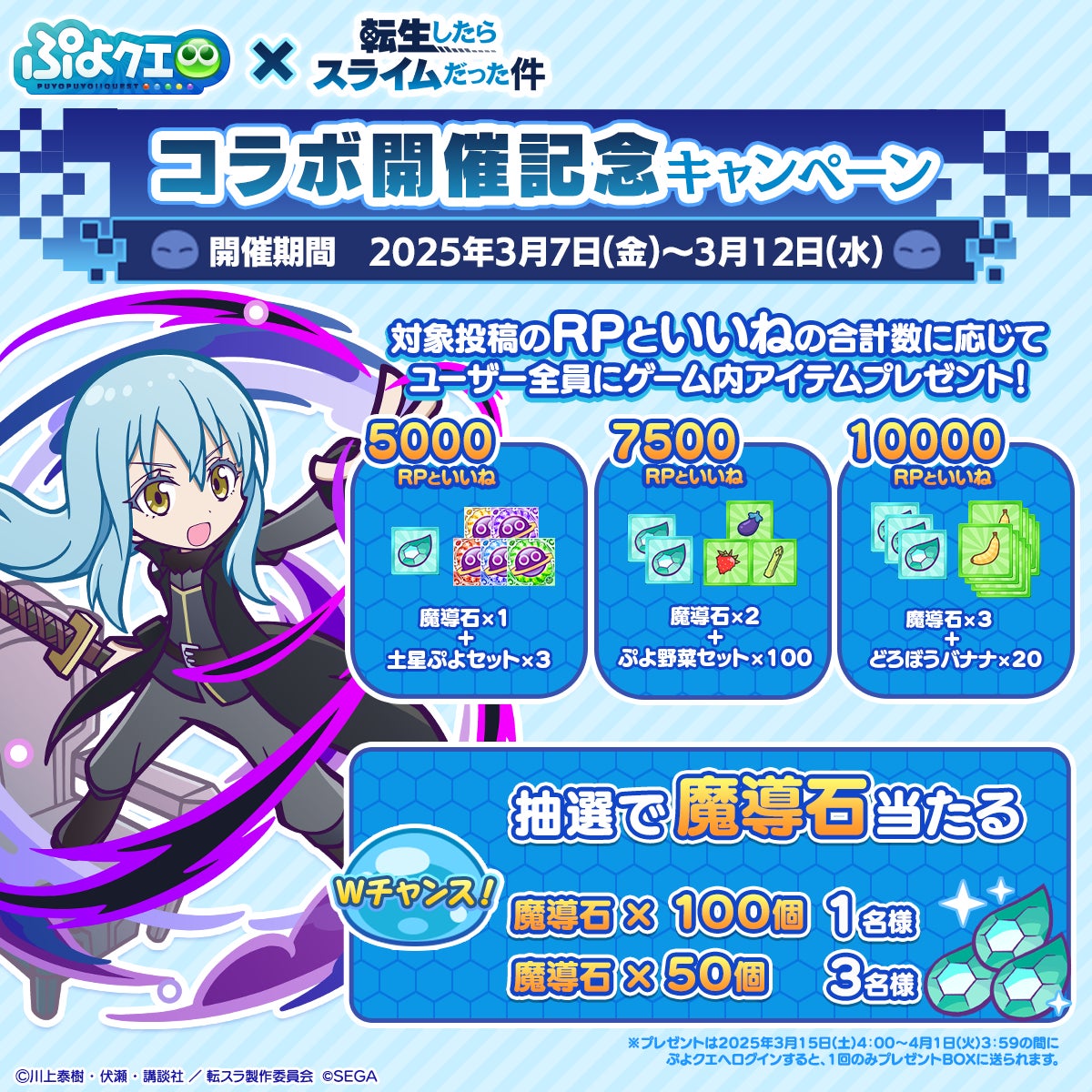 - 『ぷよぷよ!!クエスト』と『転生したらスライムだった件』のコラボイベントが2025年3月14日より開催