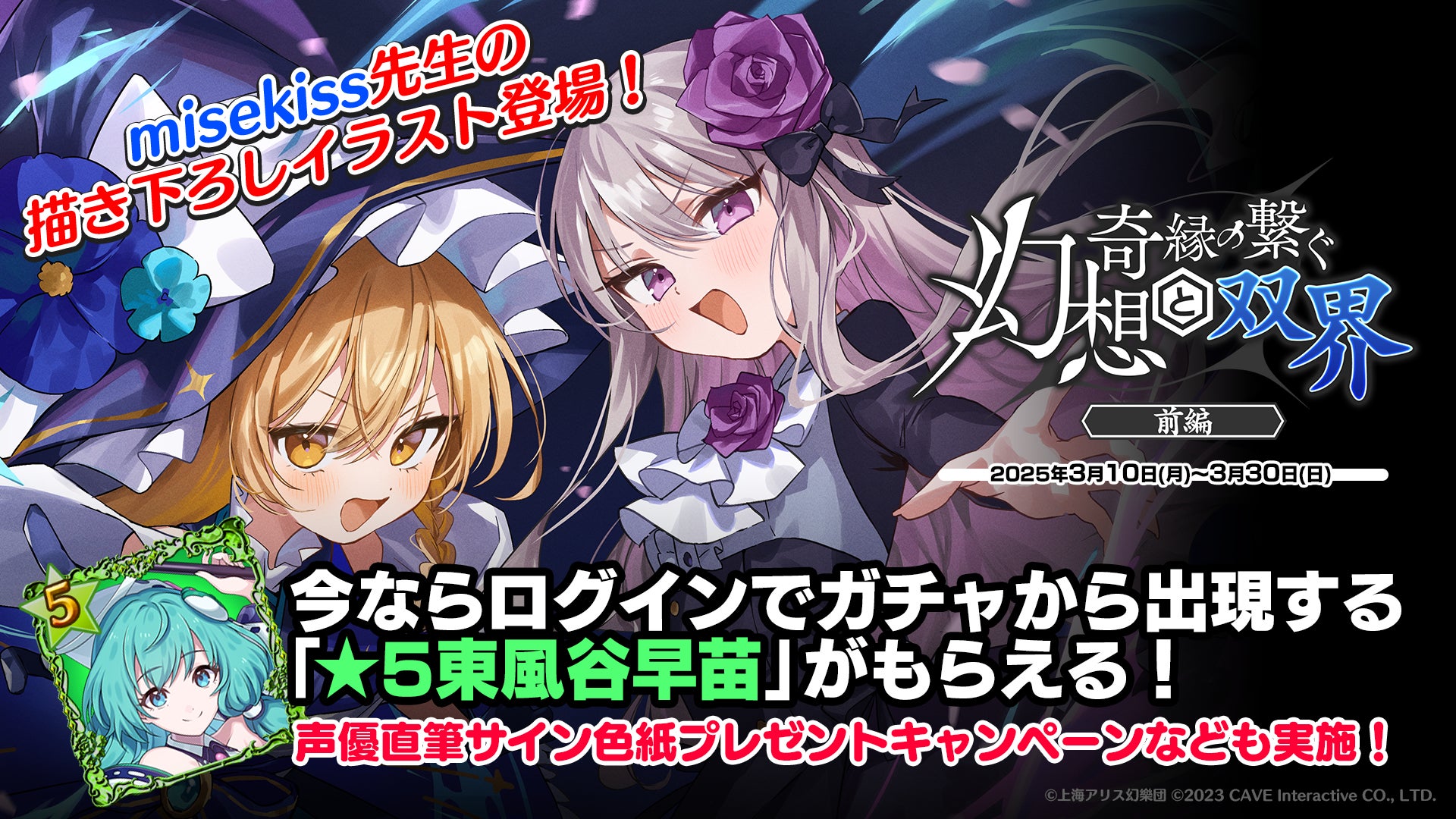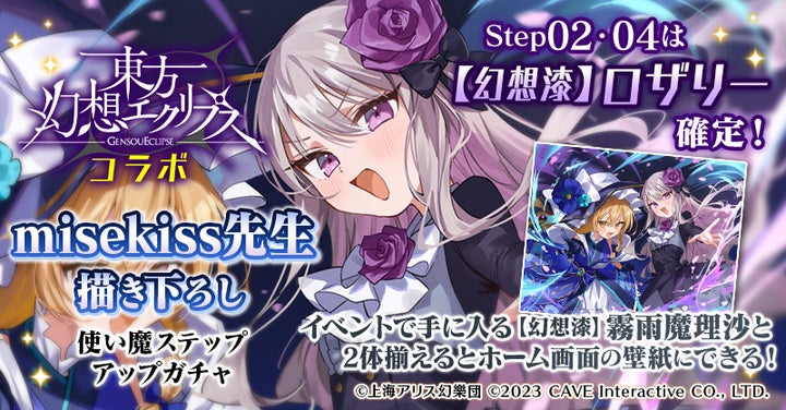 イベントでは、『東方幻想エクリプス』の博麗霊夢、霧雨魔理沙、東風谷早苗、八雲紫、フランドール・スカーレット、魂魄妖夢、西行寺幽々子らが使い魔として登場し、新規ボイスやmisekiss先生描き下ろしイラストも楽しめます。