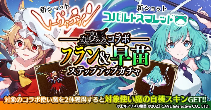 コラボガチャでは、東方キャラをモチーフにした新ショットを持つ使い魔が登場します。