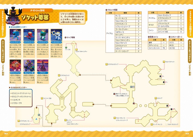 マップガイドでは、ブロックやコイン、ショップの商品リストも確認できます。