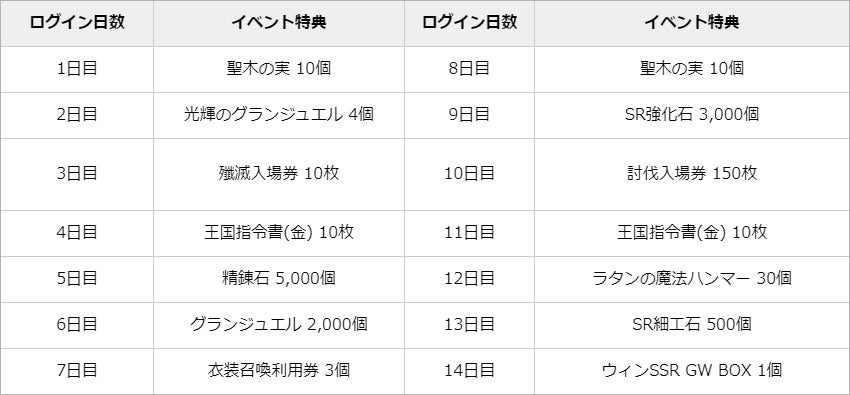 このイベントでは、特別なログインボーナスや他のアップデートも行われます。