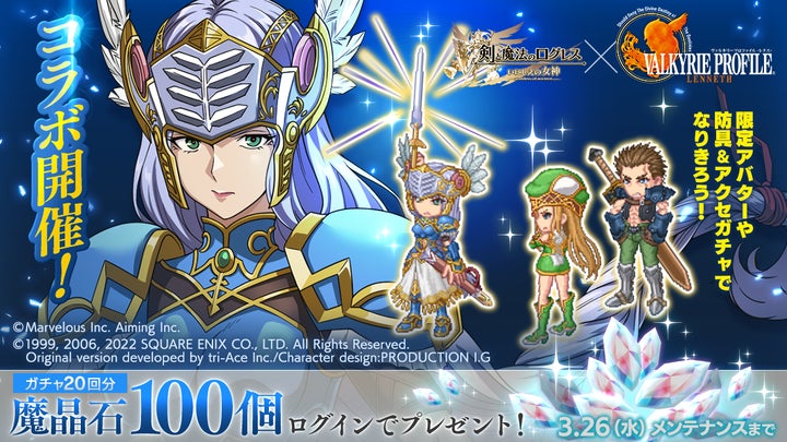 株式会社マーベラスは、スマートフォン向け本格オンラインRPG『剣と魔法のログレス いにしえの女神』において、2025年3月12日より「ログレス」×「ヴァルキリープロファイル -レナス-」コラボを開始しました。