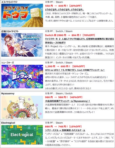 - セール期間は3月14日(金)~3月21日(金) (Steam, Nintendo eShop)