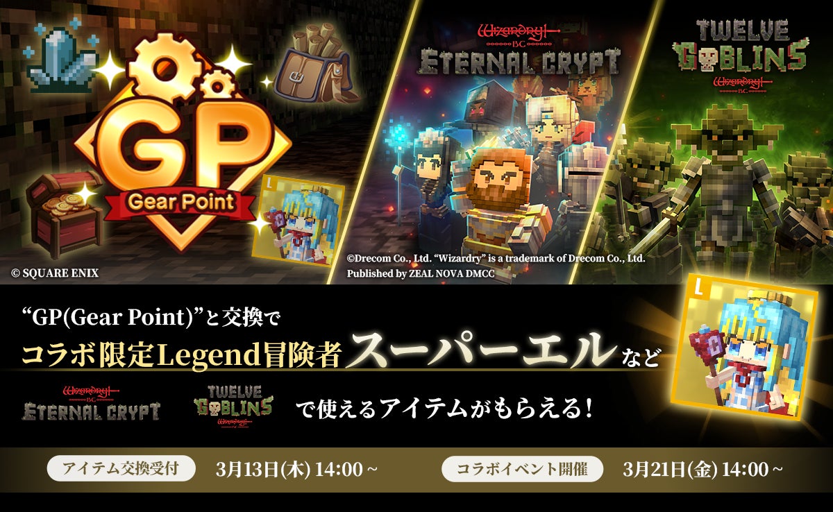 「Wizardry BCプロジェクト」のブロックチェーンゲーム『Eternal Crypt – Wizardry BC -』(エクウィズ)とミニアプリ『Twelve Goblins – Wizardry BC -』(TGWiz)が、『資産性ミリオンアーサー』とのコラボレーションを2025年3月21日から開催します。