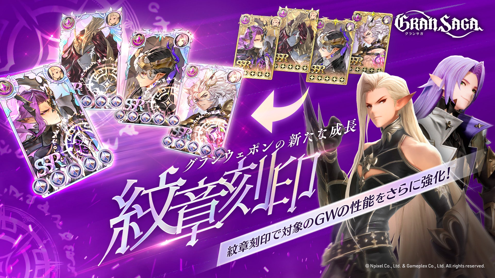 具体的には、ゼルカ、アザエル、クレイトン、バラク(SGW)の4つのグランウェポンに紋章刻印が追加され、スキル性能が向上します。
