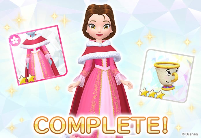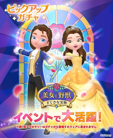 同時に、「美女と野獣 すてきな宝物」ピックアップガチャも開催され、「ベルのプリンセスドレス」や「ビーストのロイヤルコート」といったイベントを有利に進めるためのウェアの提供割合がアップします。
