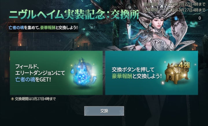 アップデートを記念して、21日ログインイベントや「ニヴルヘイム」実装記念交換所イベントも開催中です。