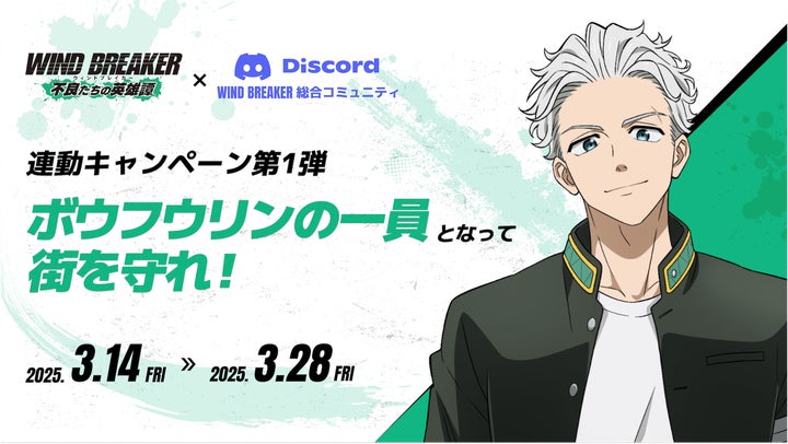 『WIND BREAKER 不良たちの英雄譚』(ウィンヒロ)の配信開始を記念し、2025年3月14日~28日にDiscordコミュニティ連動キャンペーンが開催されます。