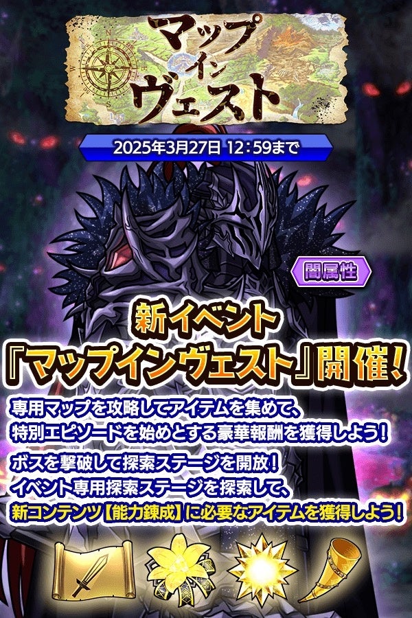 DMM GAMESが運営するRPG『クレイヴ・サーガ 神絆の導師』で、3月13日より新イベント「マップ・インヴェスト」と「悪魔シリーズガチャ」が開催されました。